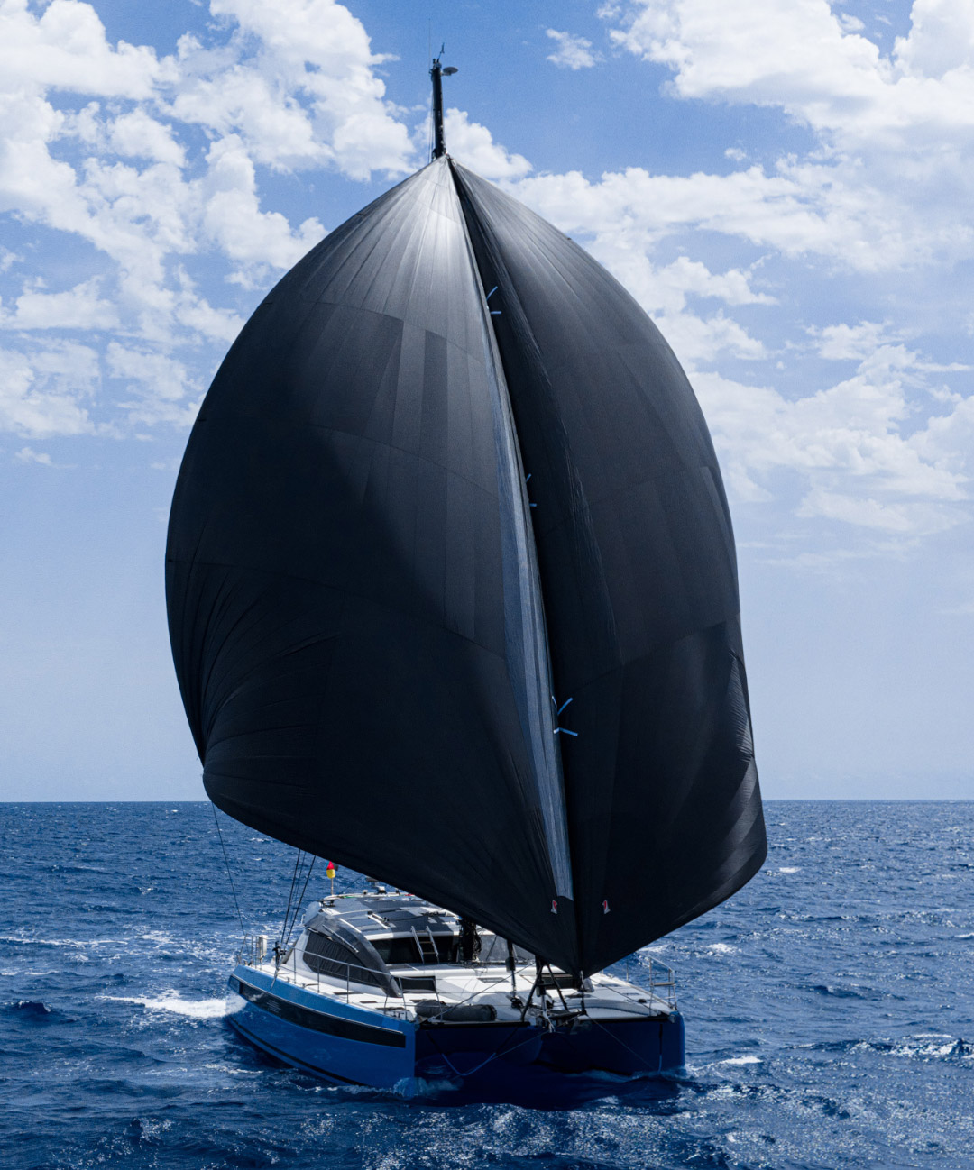 Seilet kan settes som et dobbelseil eller samlet, noe som gir en sømløs tilpasning til alle unnavindsvinkler.